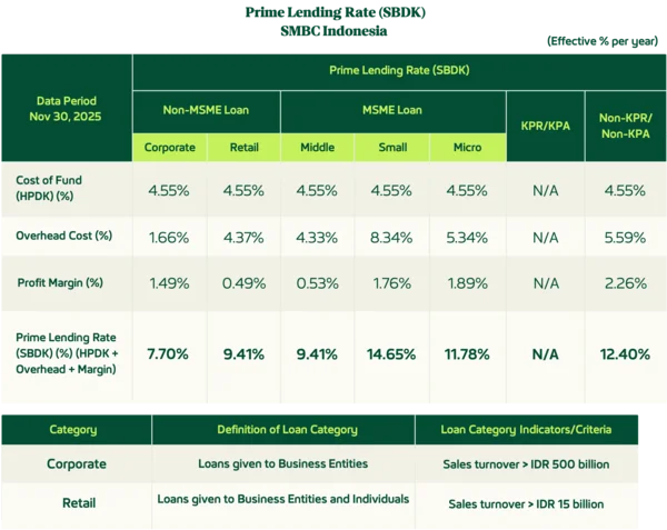 The Prime Lending Rate (SBDK) has not taken into account the risk premium estimation component, the amount of which depends on the Bank's assessment of the risk for each debtor or group of debtors.