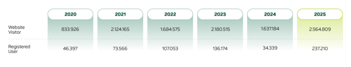 This collaboration resulted in thousands of content articles, tips, training videos, and consultations with experts, which can be accessed by all registered Daya.id users. Here is the number of visitor Daya.id visitors from 2020 to 2025.