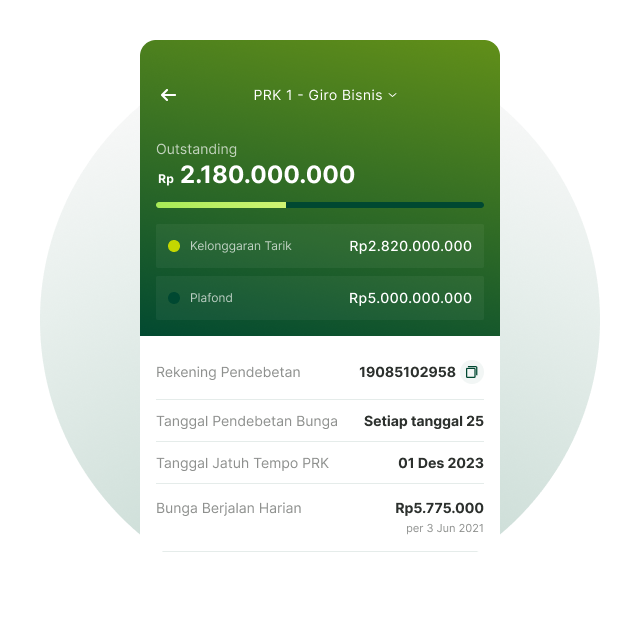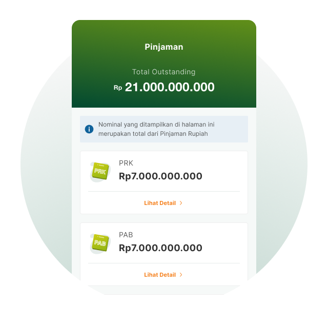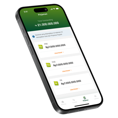 Mudah melihat detail informasi fasilitas pinjaman Anda dan notifikasi pengingat untuk tanggal penting dalam fasilitas pinjaman Anda.